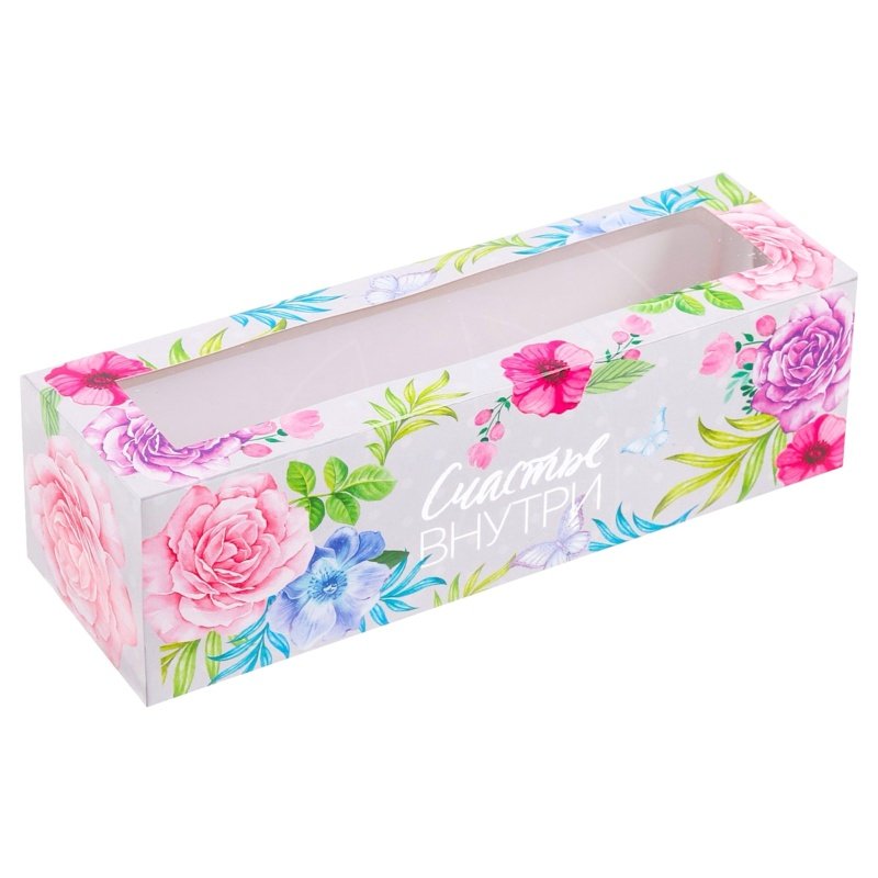 Доставка Коробка для макарон с окном "Цветы" 18х5,5х5,5 см из магазина в вашем городе: